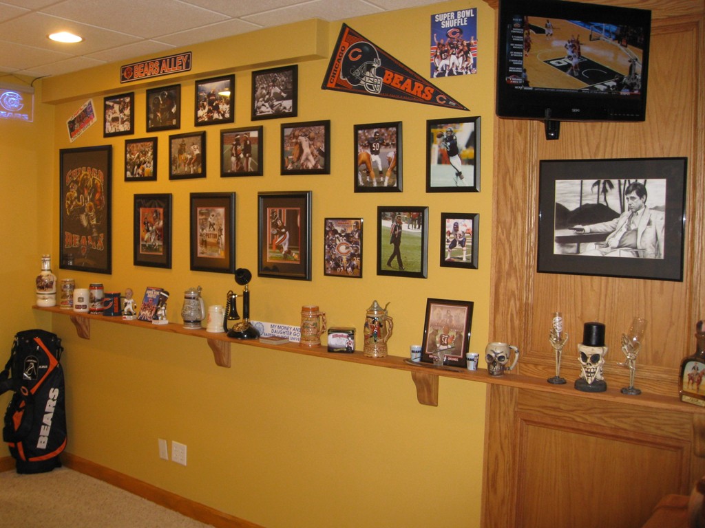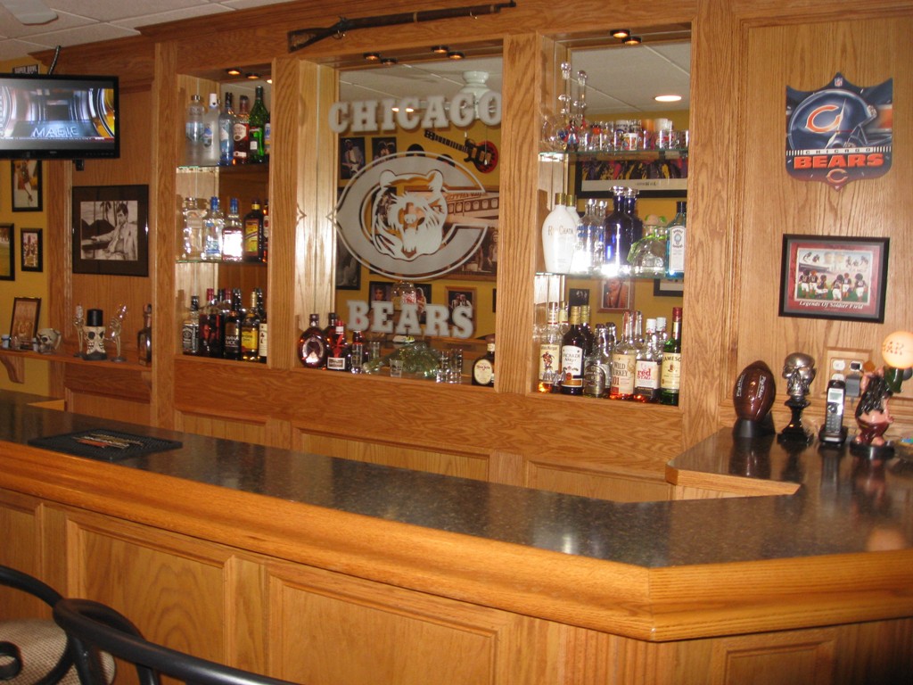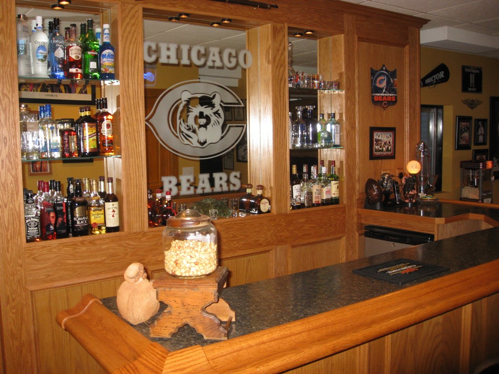 Oak Bar with Chicago Bears Logo in Mirror