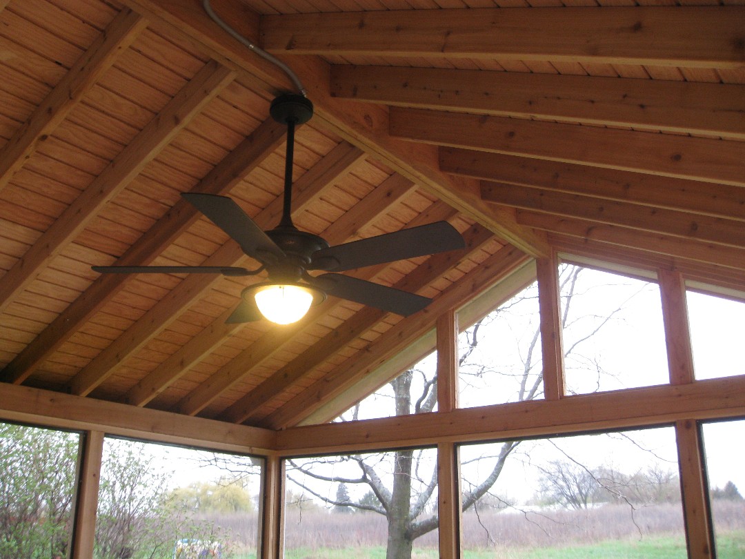 Screened Room Interiors can be finished or unfinished. Exposed Cedar Framing or covered with Tongue and Grooved Cedar. All have Aluminum Framed Removable Screens for easy repairs |